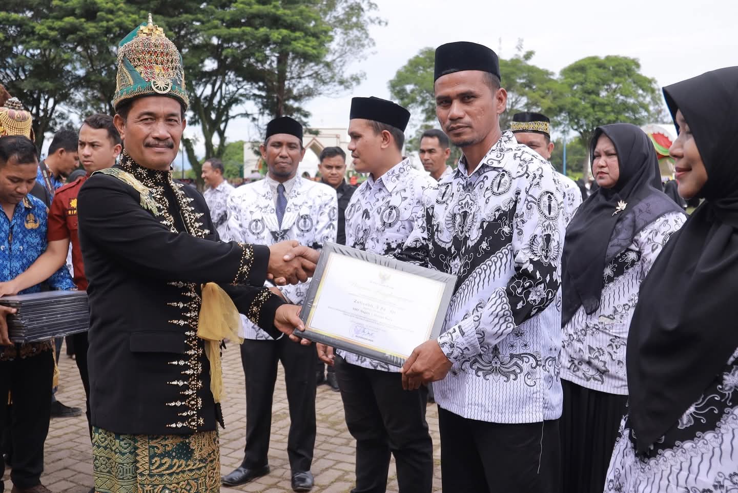 Acara megah tersebut dihadiri oleh Bupati Aceh Besar, Muharram Idris, Wakil Bupati Drs. H. Syukri A. Jalil, serta jajaran pejabat tinggi daerah. Ribuan guru dari berbagai kecamatan turut memeriahkan jalannya apel, menjadikan peringatan ini bukan hanya seremoni, melainkan wujud nyata penghormatan atas perjuangan para pendidik.
