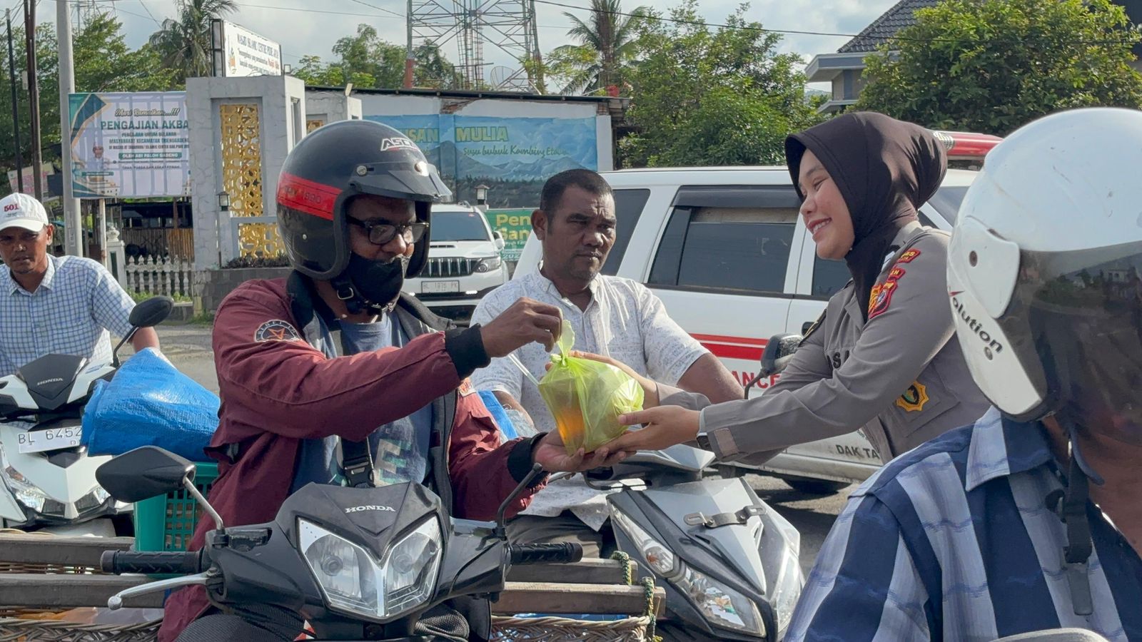 Meureudu – Polres Pidie Jaya melaksanakan kegiatan pembagian takjil Ramadhan 1447 H Tahun 2026 kepada masyarakat di Jalan Banda Aceh – Medan, tepatnya di depan Masjid Islamic Center Gampong Raya, Kecamatan Trienggadeng, Kabupaten Pidie Jaya, Selasa 24 Februari 2026 pukul 17.30 WIB.
