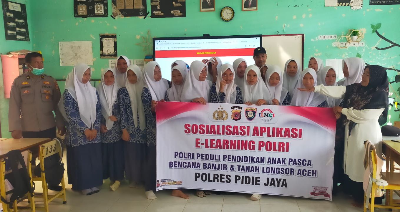 Meureudu – Dalam rangka mendukung peningkatan mutu pendidikan serta program Polri Peduli Pendidikan pasca bencana, Satuan Binmas Polres Pidie Jaya melaksanakan kegiatan sosialisasi E-Learning Polri Mengajar di SMP Negeri 1 Meureudu, Kabupaten Pidie Jaya, Rabu 11 Februari 2026.