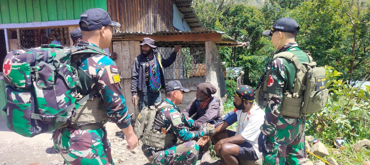 Habajino.news |Papua Tengah – Satgas Pamtas RI-PNG Kewilayahan Yonif 112/DJ Pos Ilu melaksanakan pengobatan layanan kesehatan keliling gratis kepada masyarakat Kampung Dolinggame Distrik Ilu Kabupaten Puncak Jaya Provinsi Papua Tengah, Senin (03/11/2025).